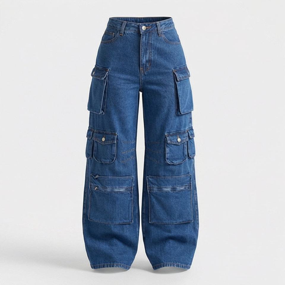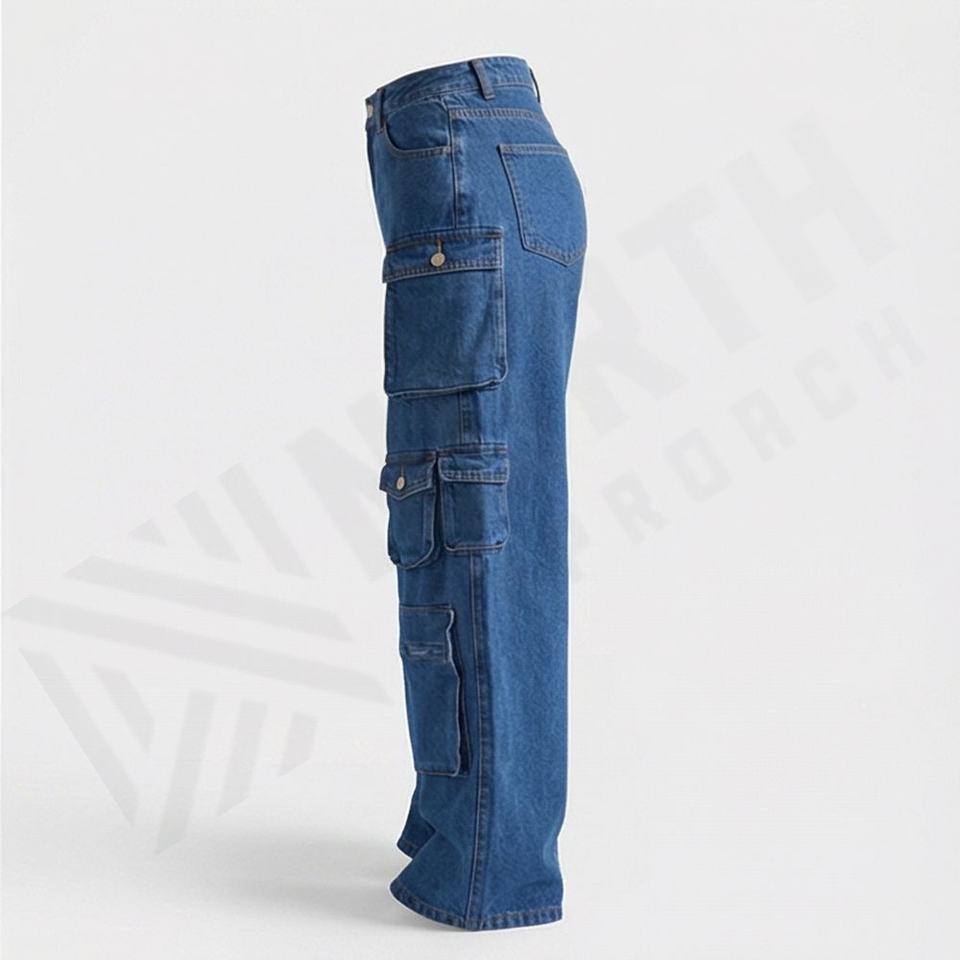 Custom Ladies Baggy Pant High Waist Fashionable Multi Pocket Denim Jeans Oversize Women Cargo Pants Premium Trendy Trousers