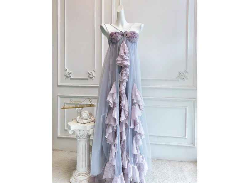 Custom Lady Fashion Breathable Chiffon Maxi Dress V-Neck Long Sleeves One Piece Split Asymmetrical Ruffle Anti-Static for