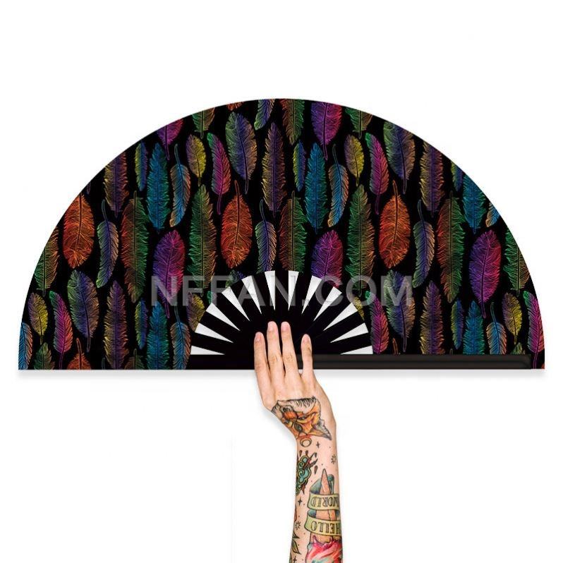 Custom Large Bamboo Folding Fans Portable Clack Cloth for Rave Festival Events or Promotion Hand Held with Floral Design