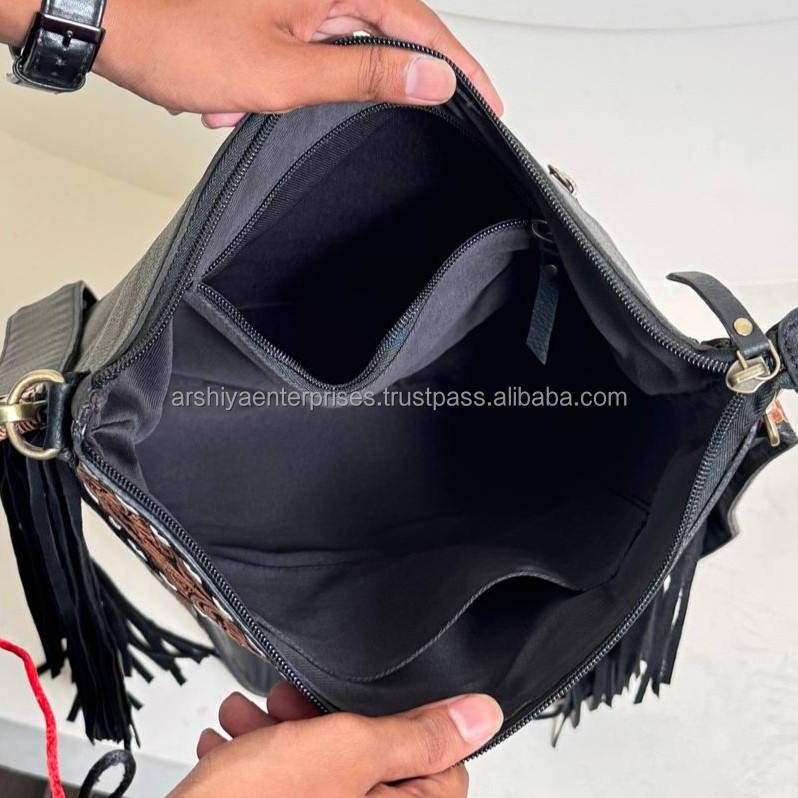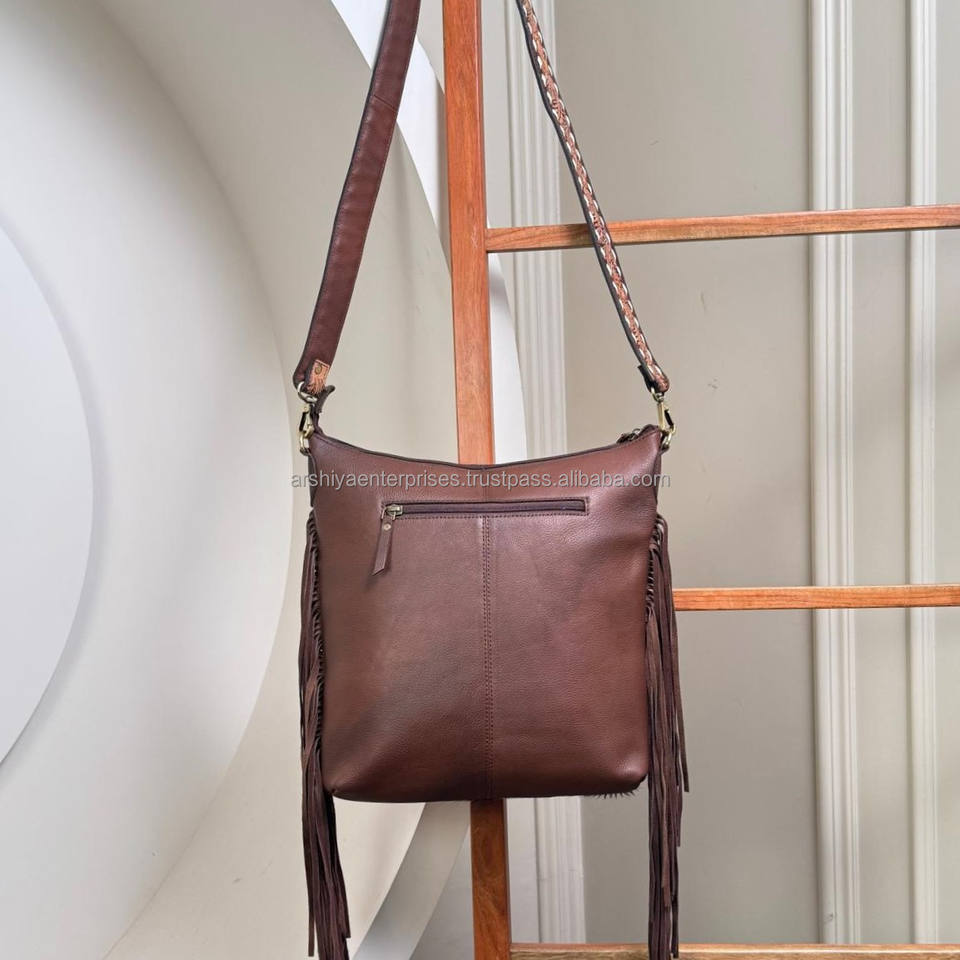 Custom Large Capacity Cowhide Crossbody Messenger Bag for Women Fashionable Hand Tooled Leather Zipper Closure Shoulder Handbags