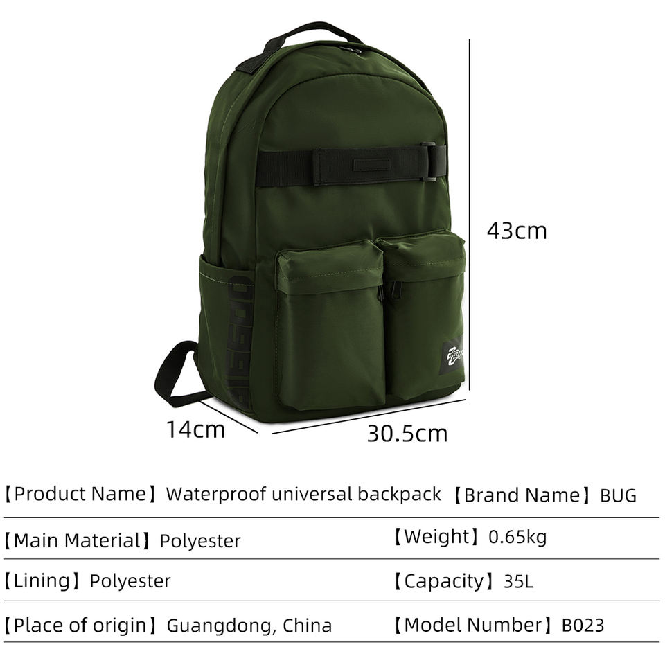 Custom Large Capacity Fashion Waterproof Bookbags Unisex Oxford Nylon School Bags Backpack Polyester Anti-theft Bug Green Zipper