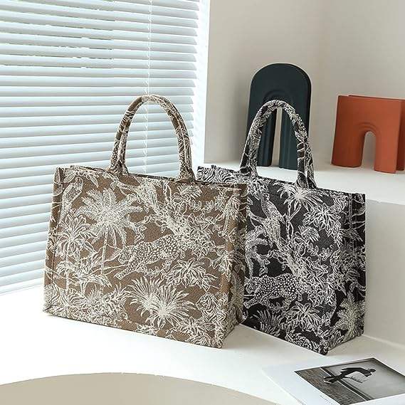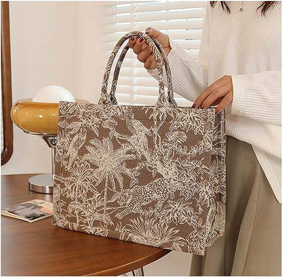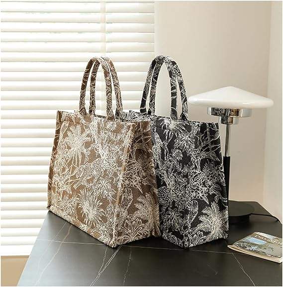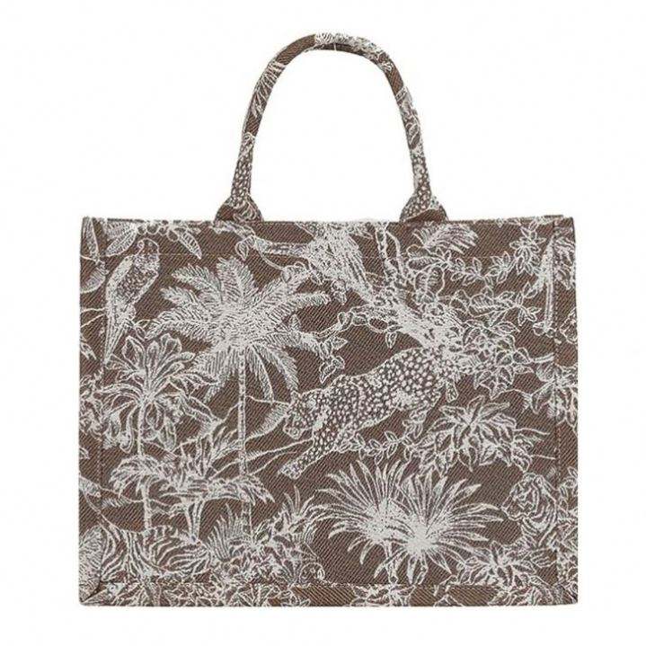 Custom Large Capacity Handbag Canvas Book Tote Flower Embroidery Retro Exquisite Doodle Fashion Shopping Bag for Women