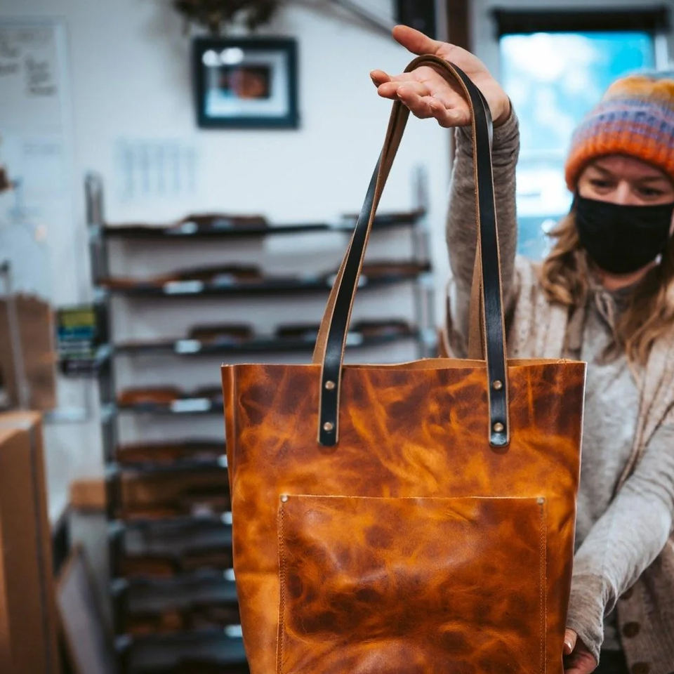 Custom Large Capacity Genuine Italian Leather Tote Handbag for Women with Zipper Closure and Two Handles Shopper Style