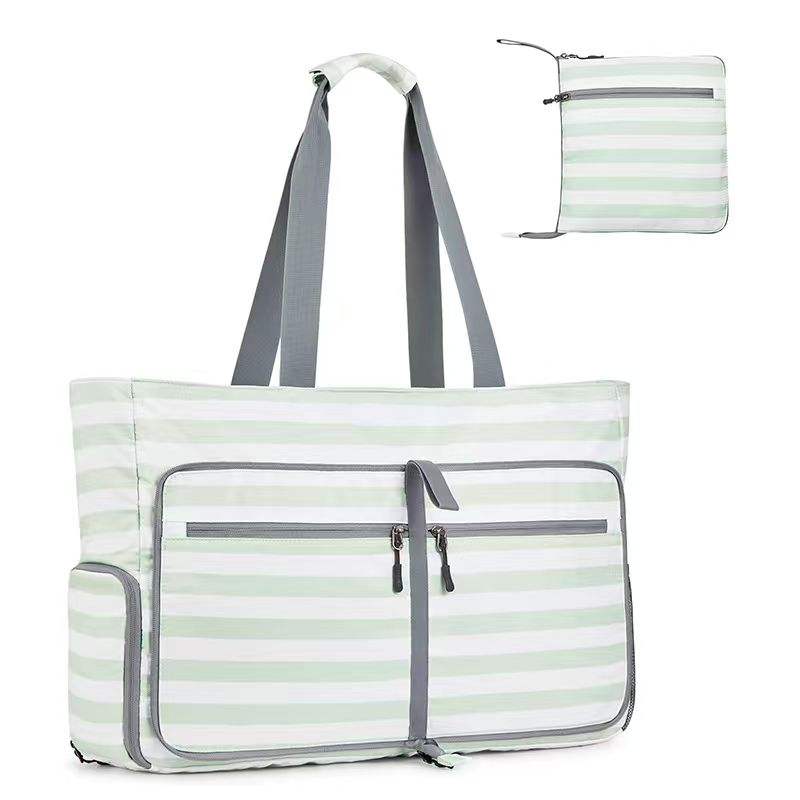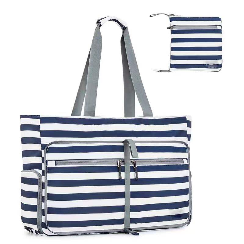 Custom Large Capacity Waterproof Zipper Foldable Beach Tote Bag Fashion Multiple Pockets for Outdoor Vacation Travel Free