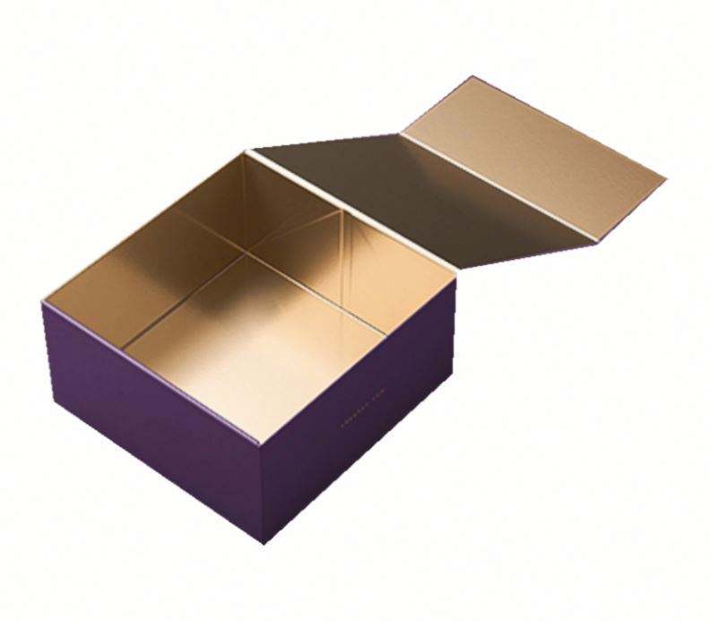 Custom Large Luxury Purple Rigid Gift Box With Gold Inner Lining Ideal for Premium Gift & Product Packaging