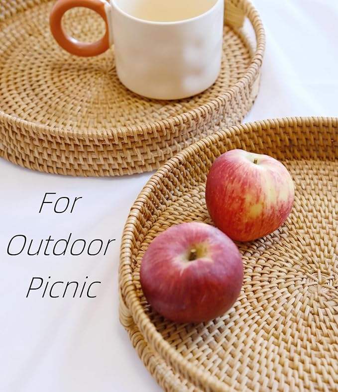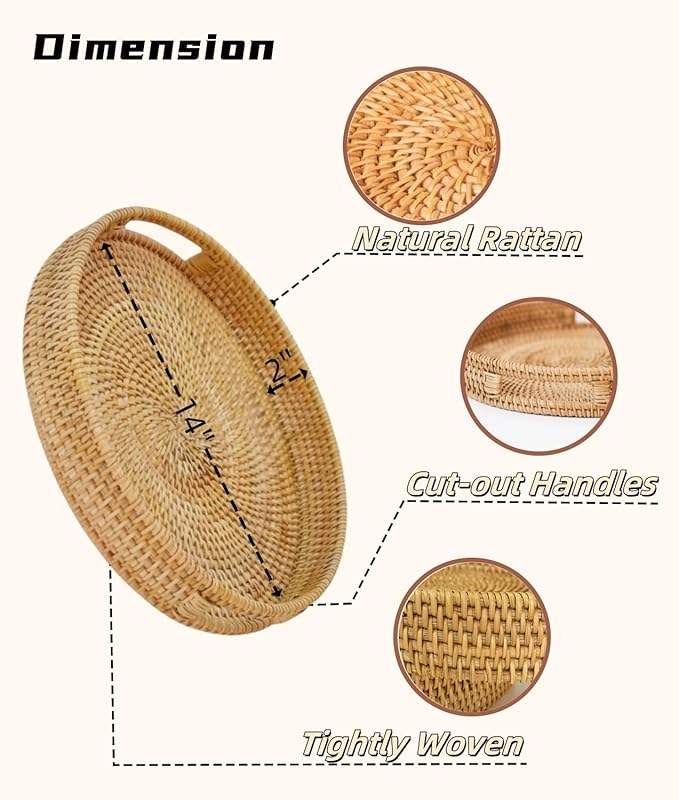 Custom Large Natural Solid Rattan Serving Tray Rustic Style for Sushi Fruit Dessert Coffee Decorative Storage