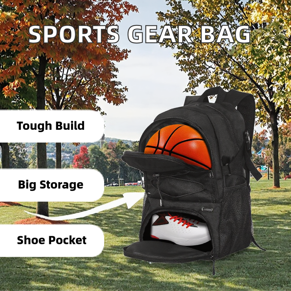 Custom Large Nylon 30-40L Sports Equipment Backpack with Separate Shoes Compartment for Volleyball Football Basketball
