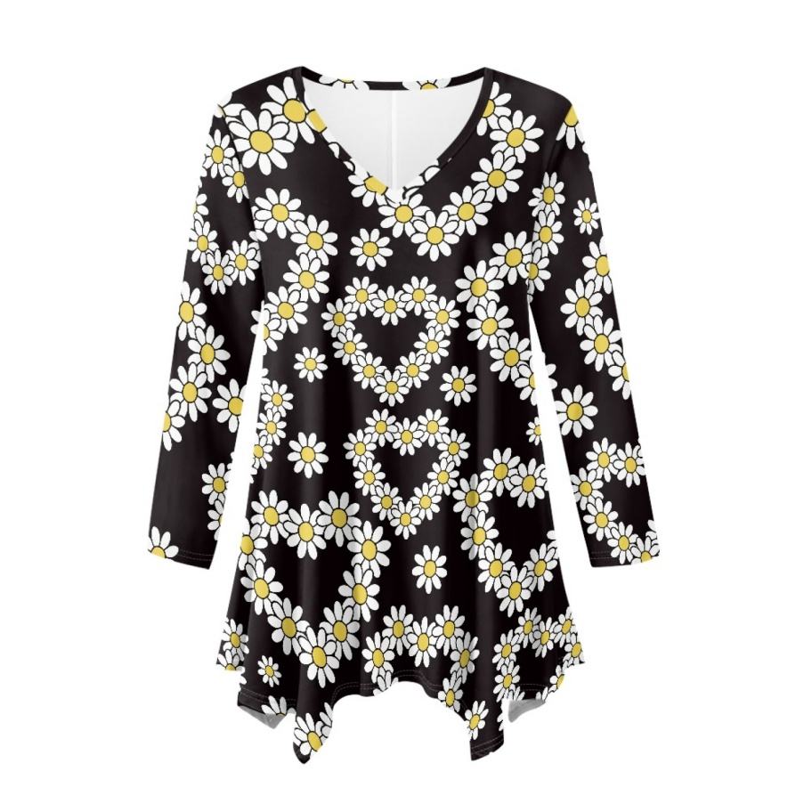 Custom Large Plus Size Tops for Women 3/4 Sleeve Shirts Tunic Tops Loose Fit Basic Lady Clothes Irregular V-neck Top and Skirt