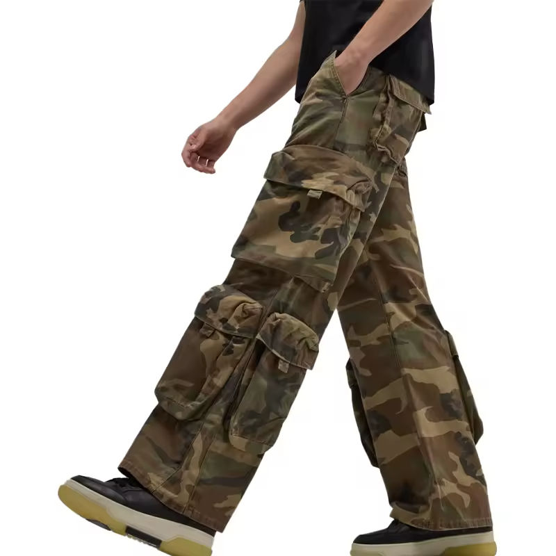 Custom Large Size Men's Casual Camo Cargo Pants 3D Pockets Straight Baggy Trousers for Outdoor Coaches Tactical Multi-Size Pants