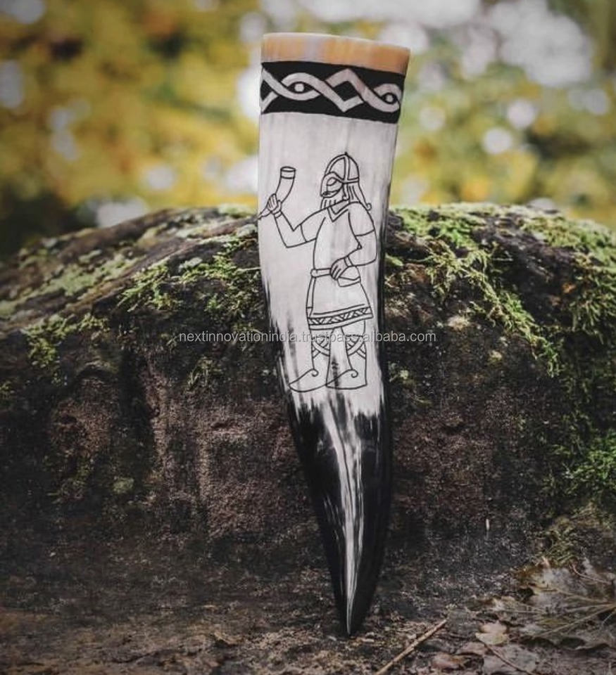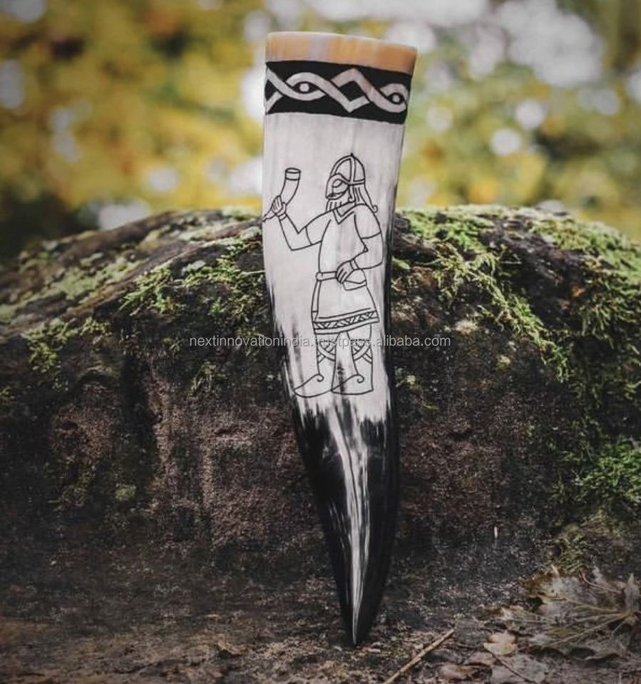 Custom Large Viking Drinking Horn with Stand Agate Buffalo Horn Hand Polished and Personalized for Drinks