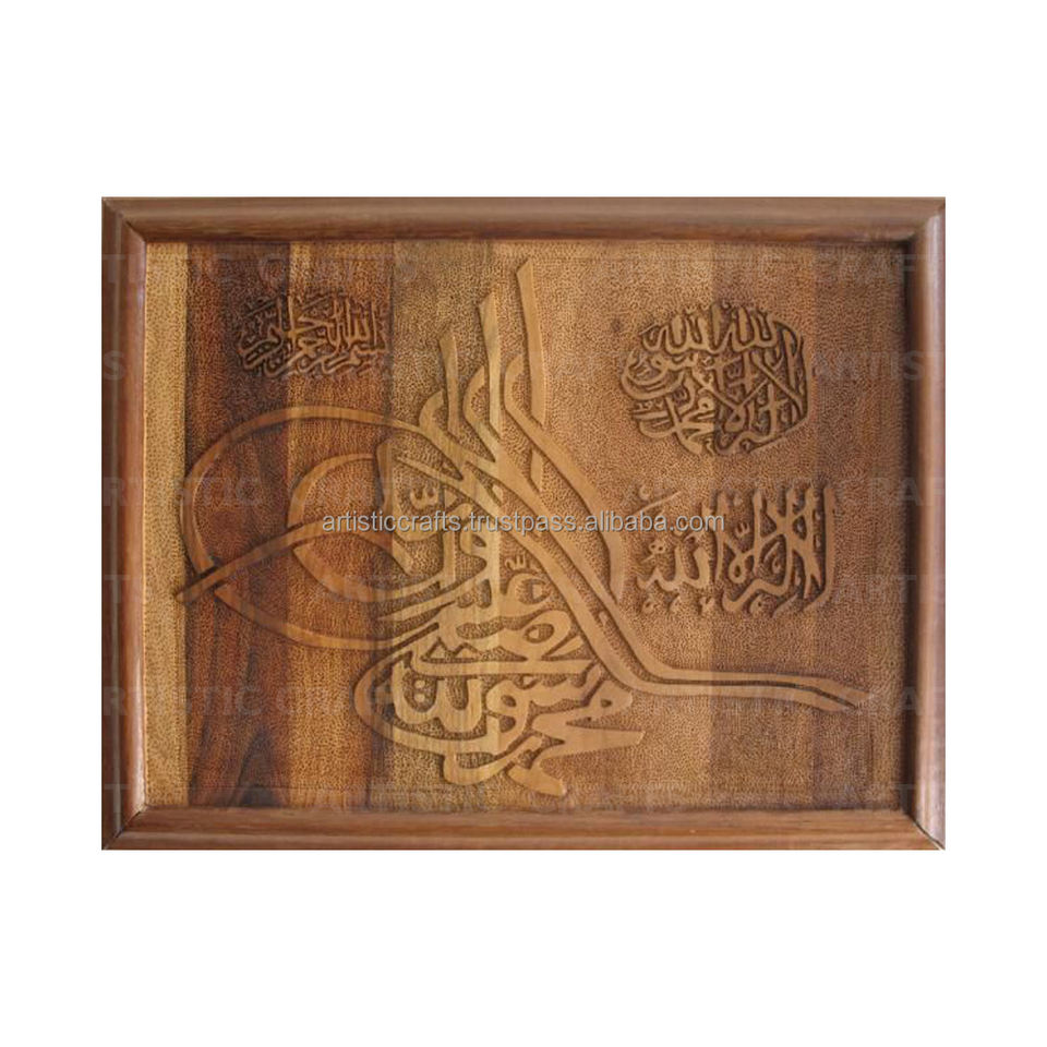 Custom Laser Calligraphy Cut Wooden Wall Hanging Carved Wood Decor with Calligraphy Signs for Home