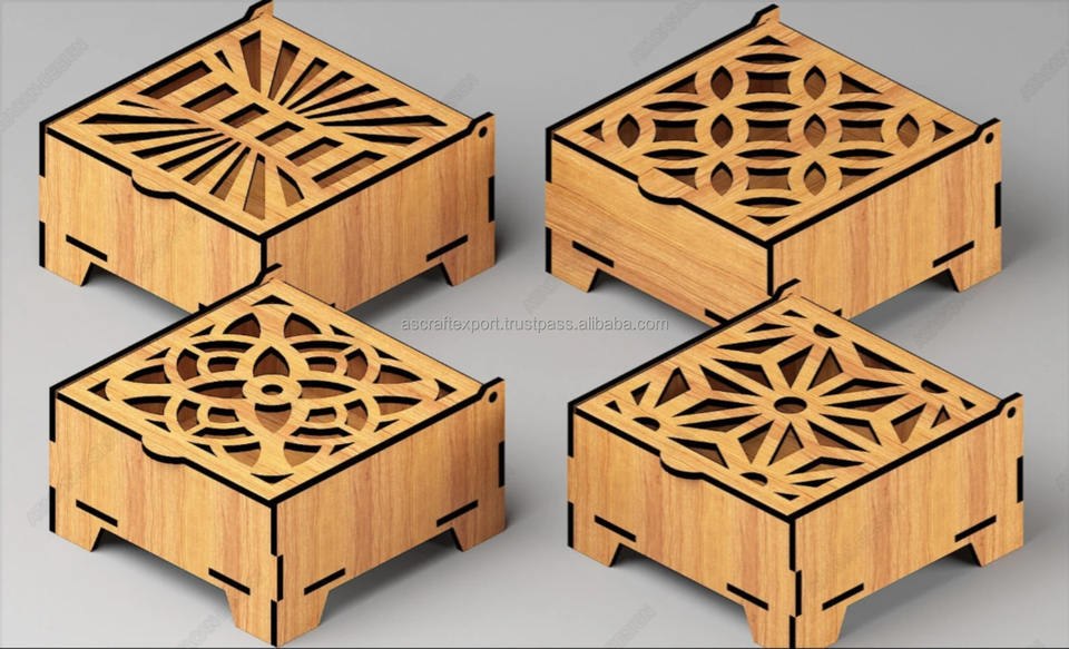 Custom Laser Cut Modern Wooden Storage Box Filigree Lid | Waterproof Eco-Friendly Jewelry Keepsake Gift Box