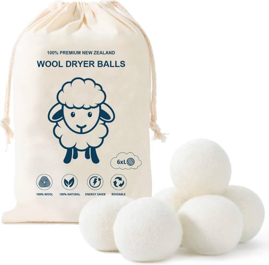 Custom Laundry Wool Dryer Balls 6-Pack 100% Made of Reusable Natural Fabric Organic New Zealand Wool Reduces Clothing Wrinkles