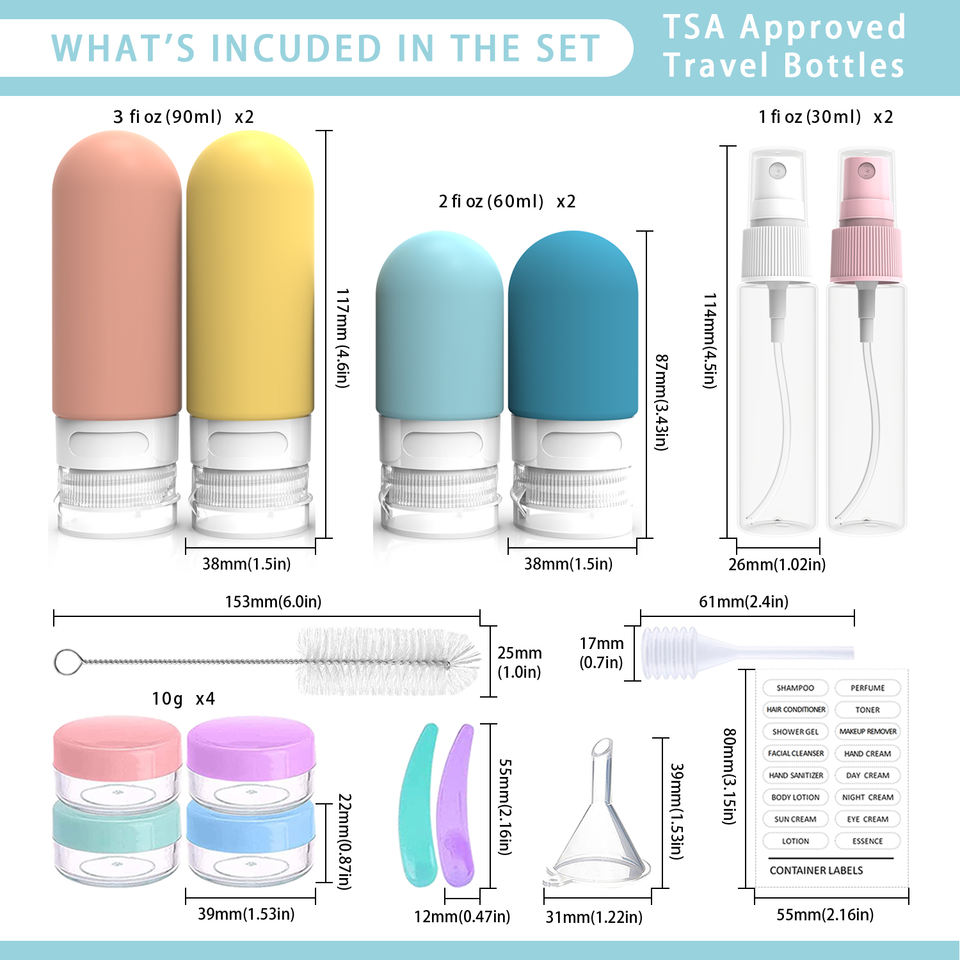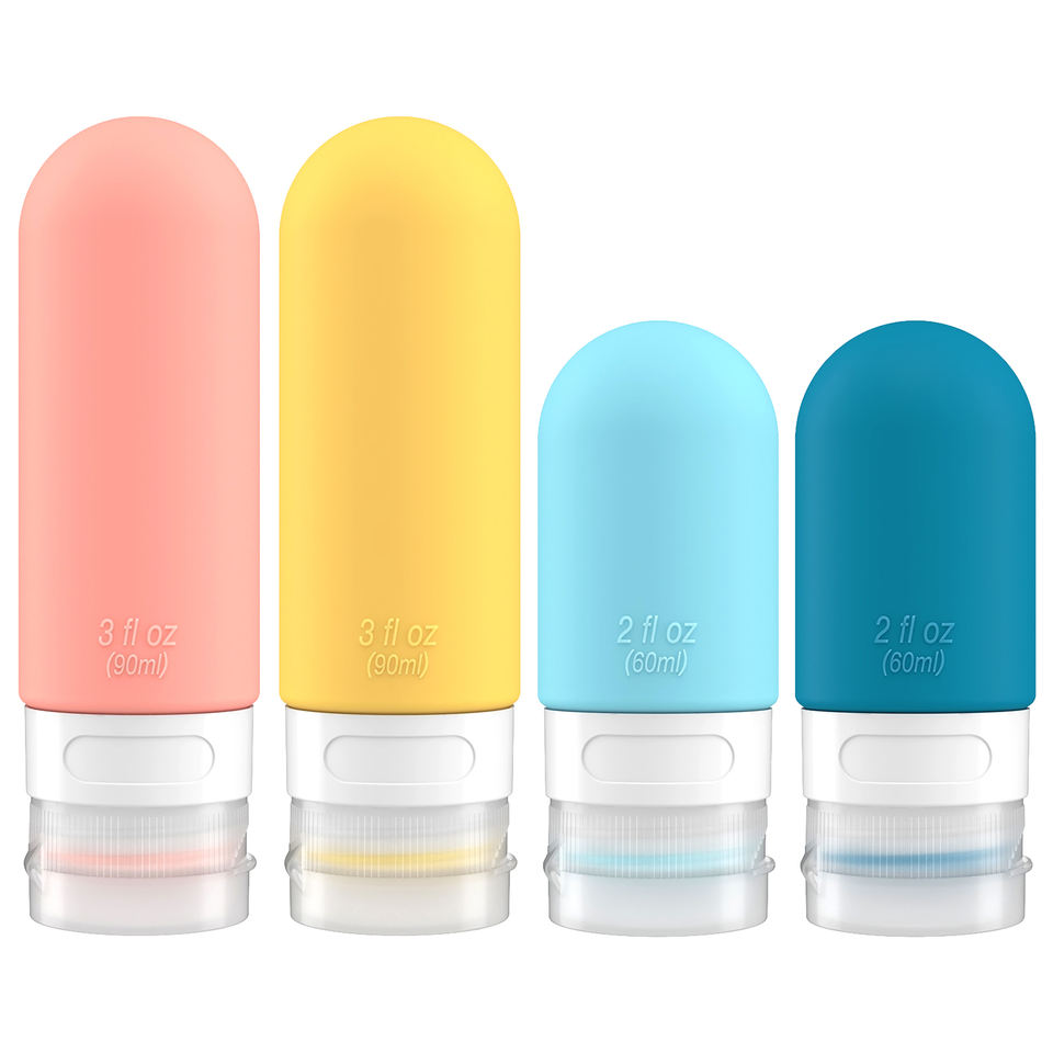 Custom Leakproof Squeeze Bottle Kit Dispenser Shampoo Bottle Portable Travel Size Cosmetic Toiletries Silicone Travel Bottle Set