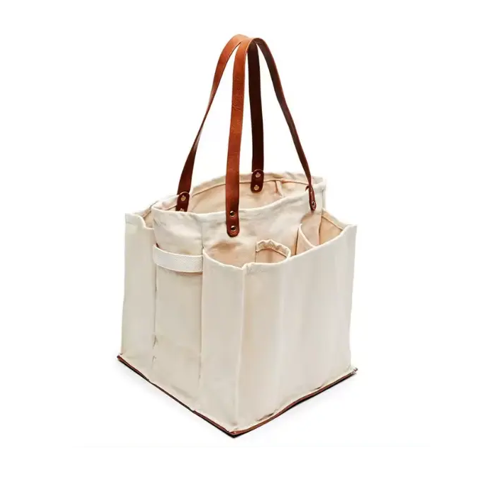 Custom Leather Handle Jute Tote Bag Multipurpose Multi Pocket Handbag Durable Eco Friendly Wholesale Manufacturer Supply