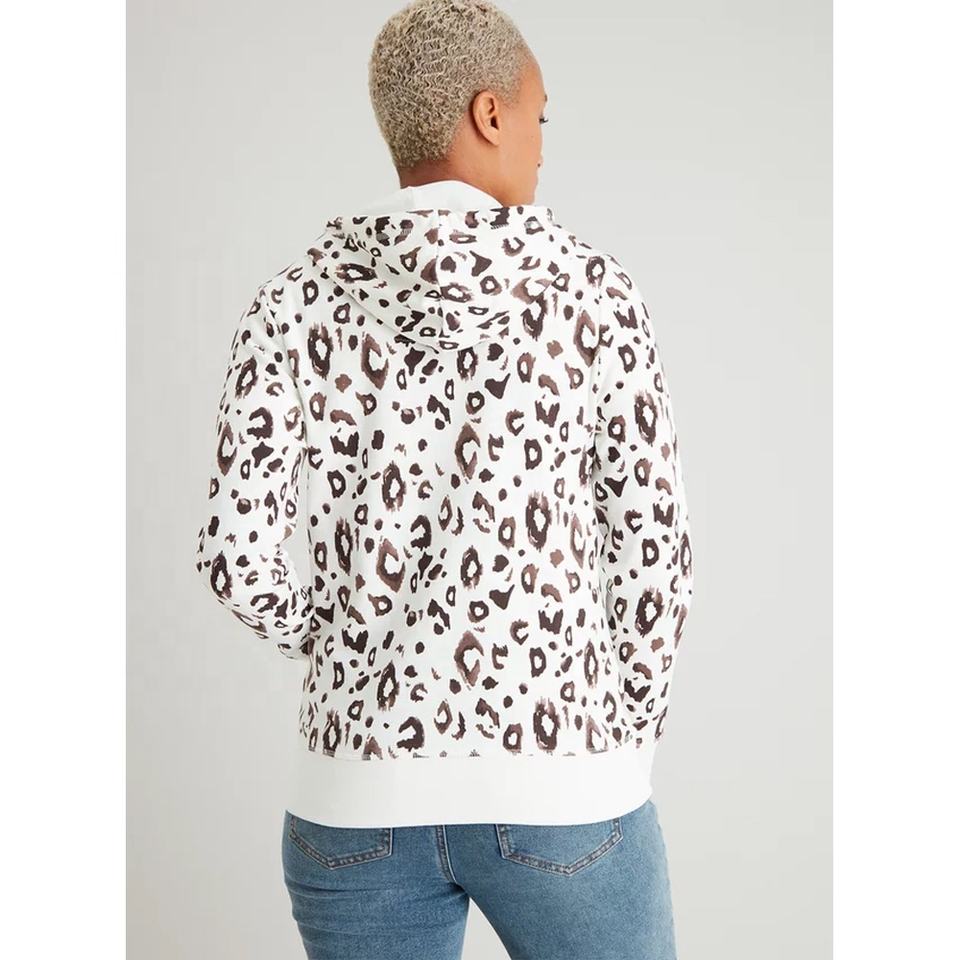 Custom Leopard Print Women Zip Up Hoodie Oversize Women Streetwear Zipper Hoodie With Pocket Plus Size Women Winter Sweatshirt