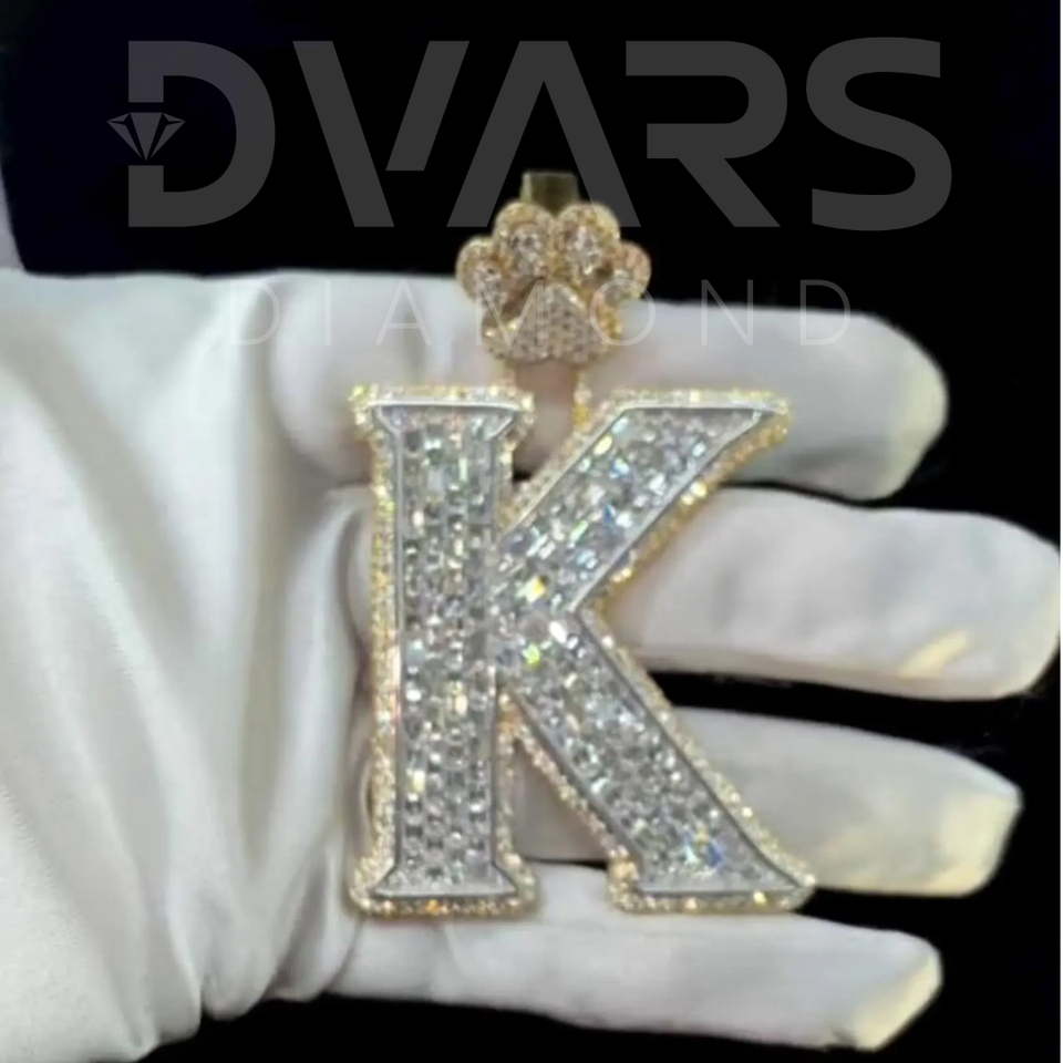 Custom Letter Crown Classic Round Cut Lab Grown Diamond Gold Plated 925 Sterling Silver Party Gift Fine Jewelry Pendant