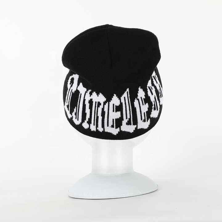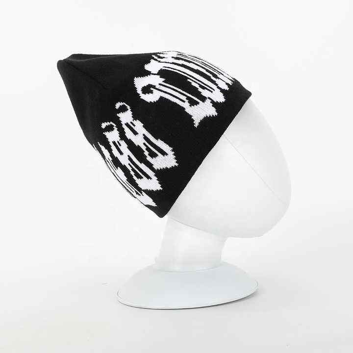 Custom Letter Jacquard Beanie Soft Knit Fabric with Puff Printing Trendy Streetwear Beanies