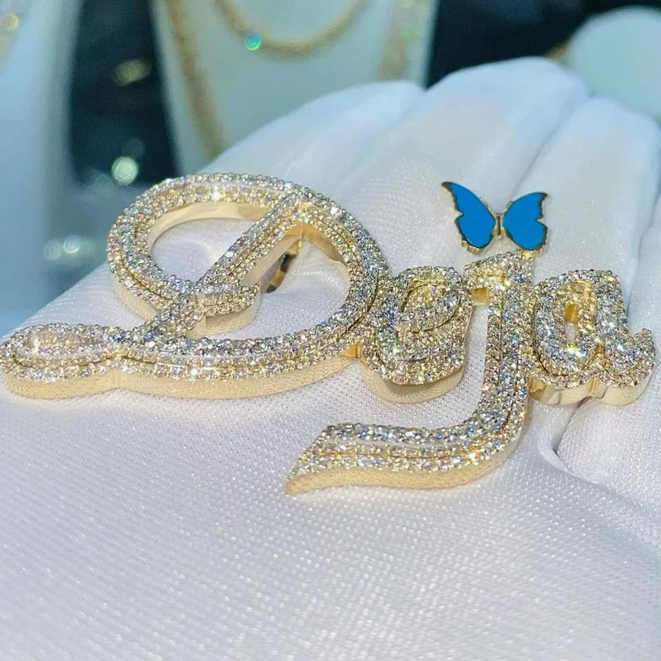 Custom Letter Name Pendant with Moissanite Brilliant Cut Rhodium Plated 925 Silver Hip Hop Party Gift Charms