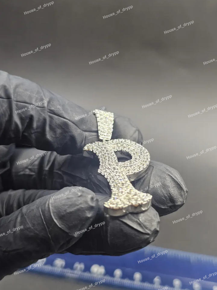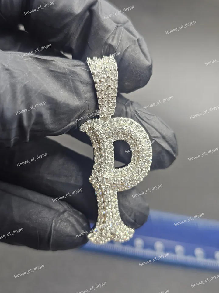 Custom Letter P Pendant Iced Out 925 Silver Finish Pave Moissanite Diamond Look Alphabet Initial Necklace Charm