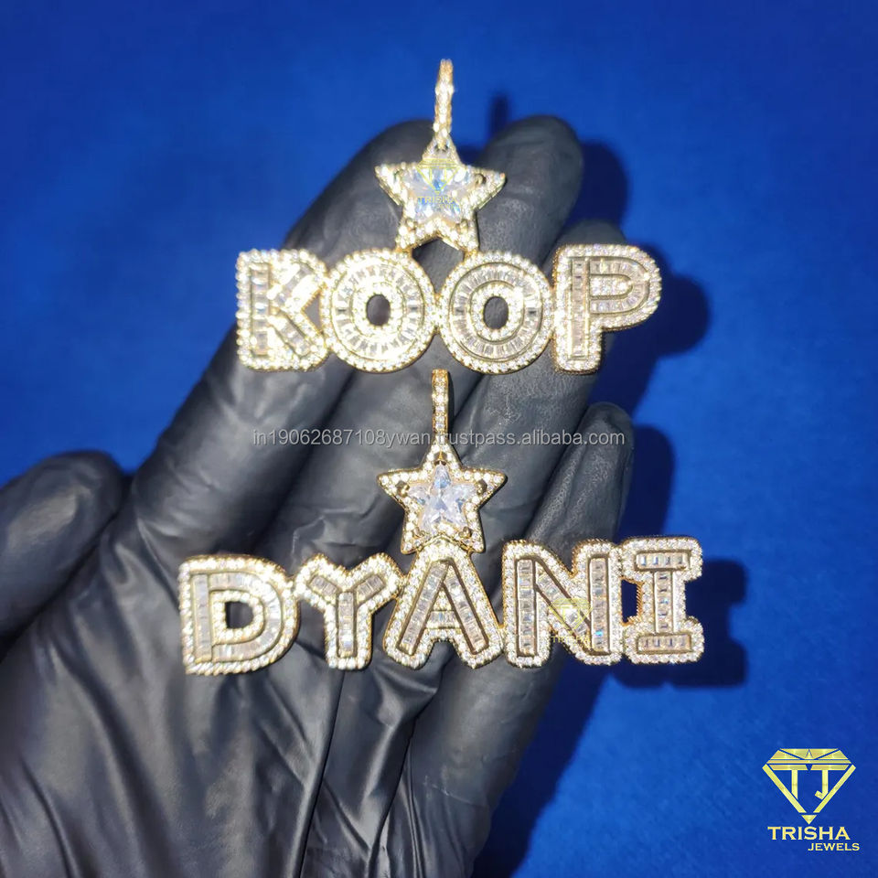 Custom Letters Pendant with Bling Star Bail Icy Baguette Nameplate Necklace Personalized Name Chain Gifts