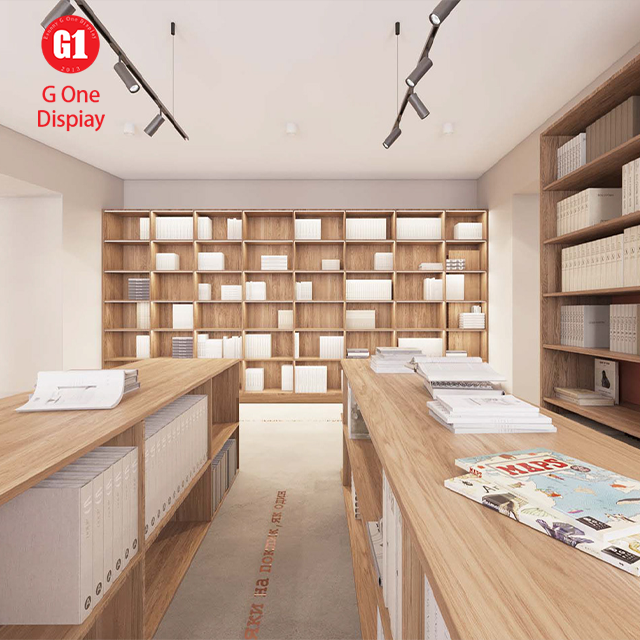 Custom Library Indoor Display Bookcase Design Wooden Wall Book Shelf Cabinet Library Furniture Decor