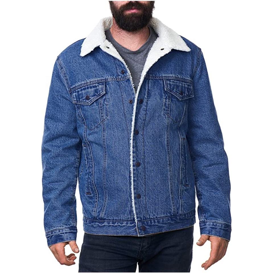 Custom Light Blue 100% Cotton Denim Washed Fleece Lining Winter Jeans Jackets Mens Wholesale