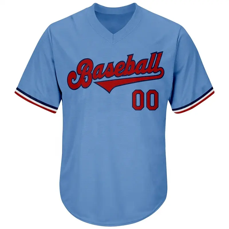 Custom Light Blue Baseball Jersey Unisex Team Uniform Personalized Number Name Button-Up Softball Shirt Athletic Wear 100%