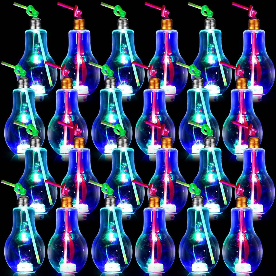 Custom Light Led Party 500ml Bulb PET Cups Promotion Cup for Weddings Christmas with Straw Lid for Water Drinking