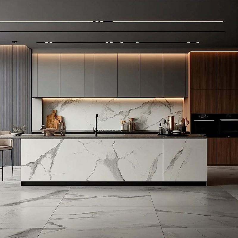 Custom Light-Luxury Shaker Style Kitchen Cabinets Sink Integrated Solution for Renovation Villas Apartments Project-Grade Supply