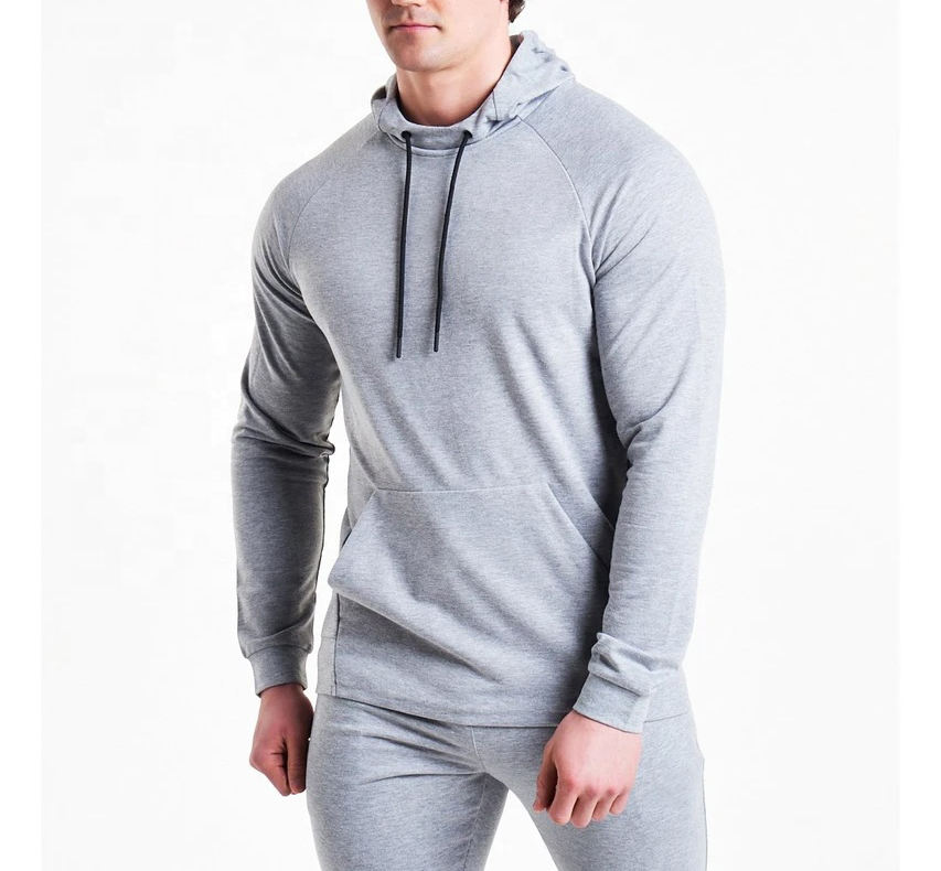 Custom Lightweight 100% Cotton Grey Pullover Tracksuits Winter Street Wear with Hooded Collar Solid Pattern Contract Drawstring