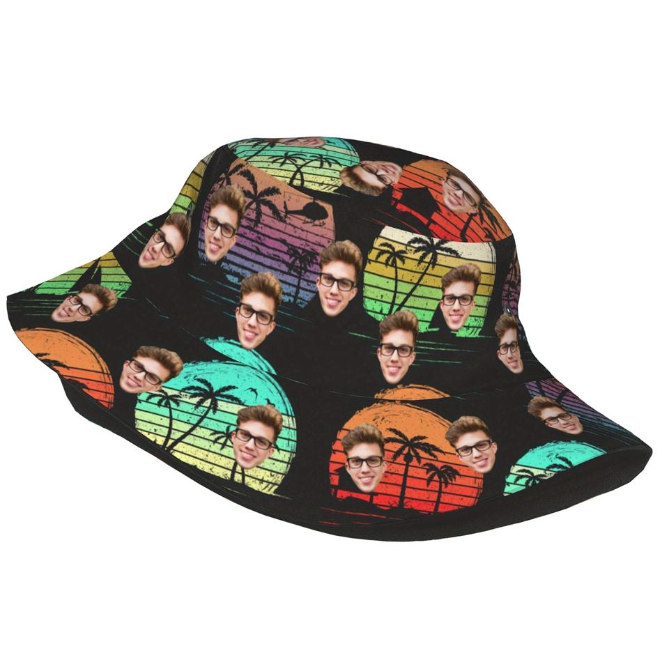 Custom Lightweight Bucket Hat Cartoon Face Print Breathable Summer Cap for Beach Camping Hiking Wedding Outdoor Activities