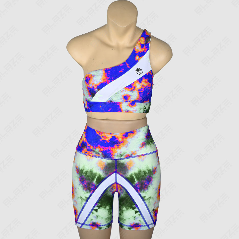 Wholesale Young Girl's Printed Yoga Top Sports Bra Sexy One-shoulder Yoga Top Custom Logo Yoga wear with booty shorts Cotton