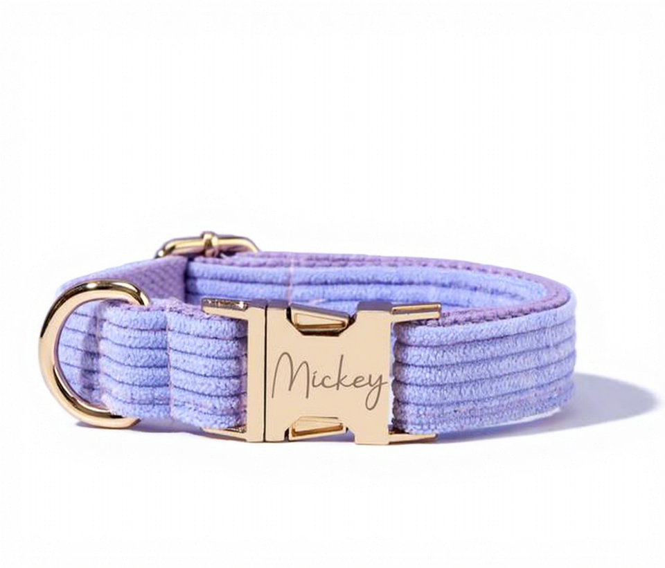 Custom Lilac Corduroy Puppy Bow Tie Set Fancy Lead With Bow For Wedding Gift Free Engraved Name On Dog Collar