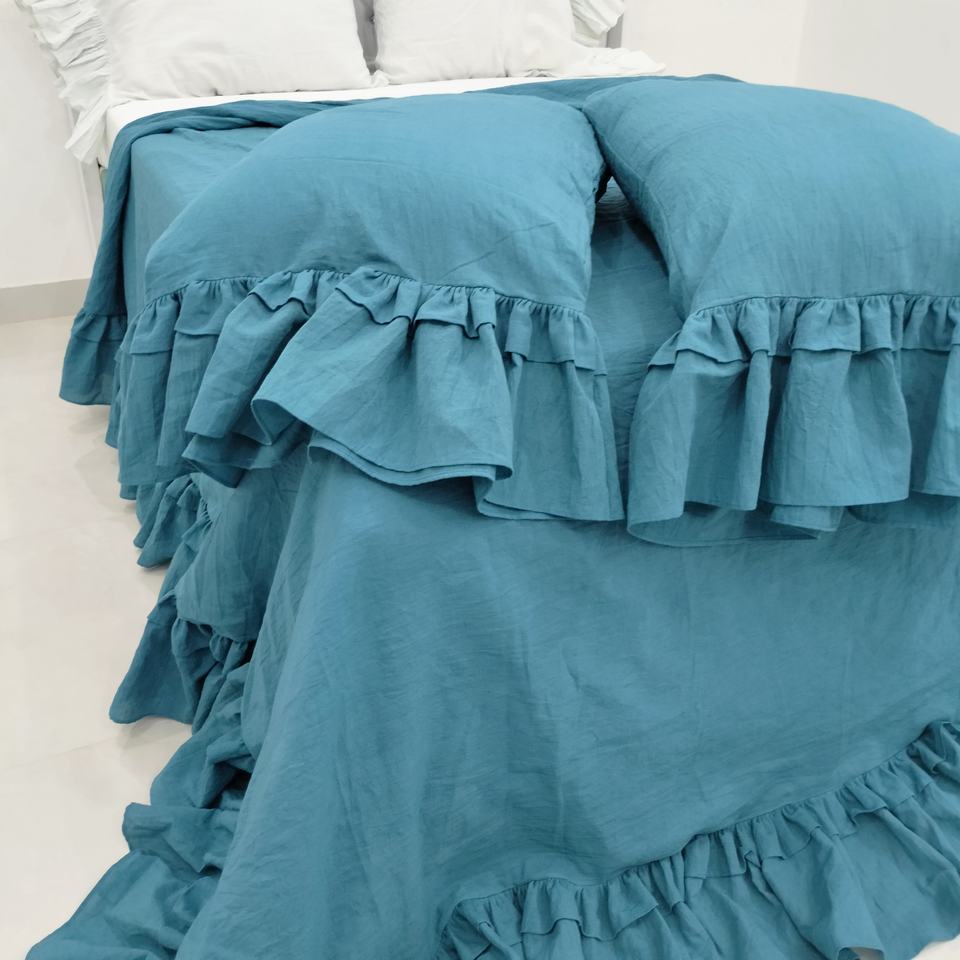 Custom Linen Double Ruffle Pillowcase Soft Country Style Cushions 20x30 18x18 Solid Washed Bed Pillows for Home Hotel Hospitals