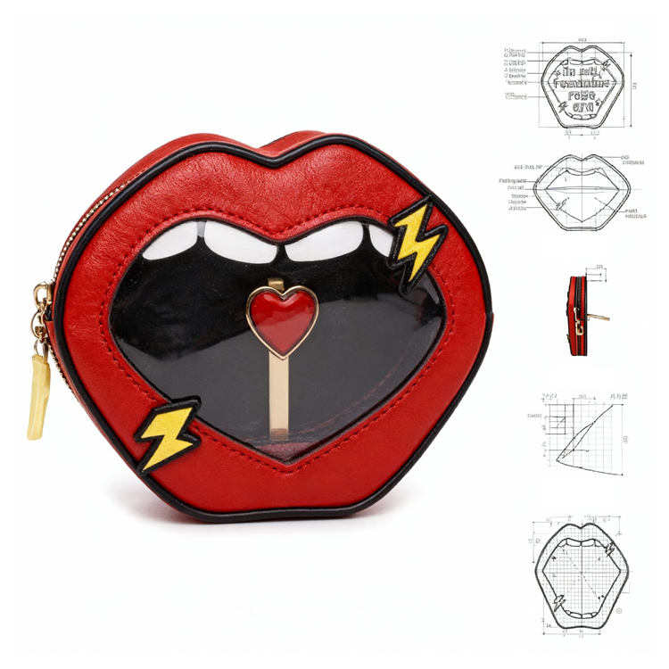 Custom Lips Shape Ita Bag with Clear Window Heart Lollipop Design PU Leather Crossbody Bag for Pin Display
