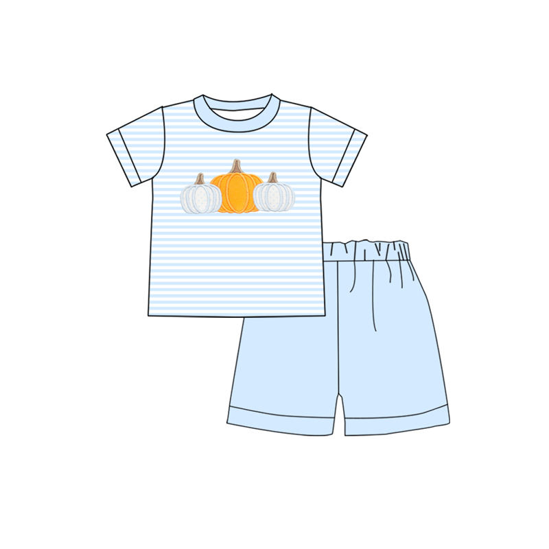 BSSO1548 RTS Little Boy Boutique Pumpkin print fall outfits kids wholesale toddler boy child pajamas clothing set