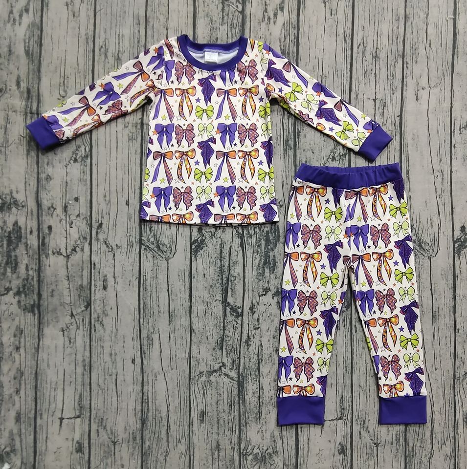 Custom Little girl Boutique Orange black bows print fall outfits kids wholesale toddler girl long sleeve child clothing set