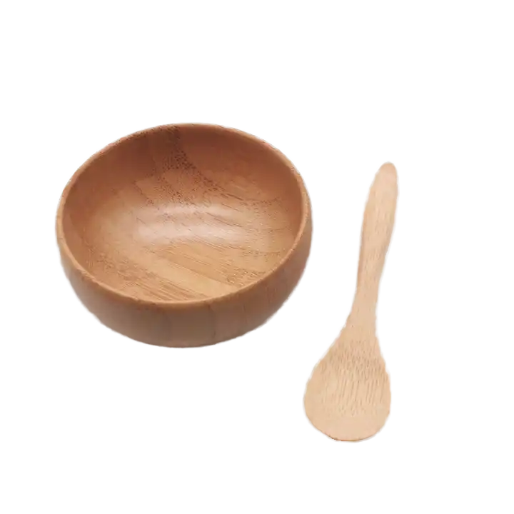 Custom Logo 1-Pack Polished Travel Eco-Friendly Bamboo Beauty Mixing Bowl Sets Cute Small Skin Care DIY Cosmetic Spatula Spoon