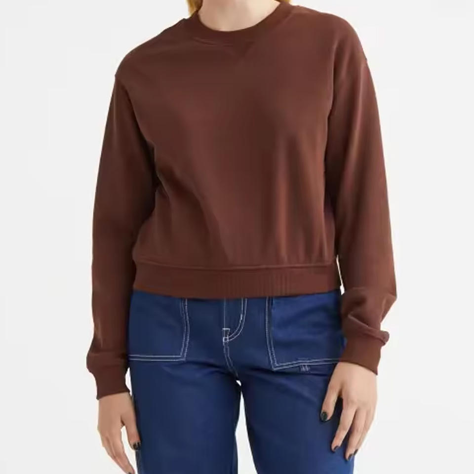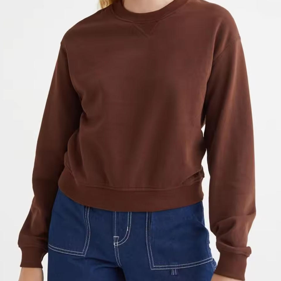 Women's 100% Cotton Thermal Pullover Custom Logo High Quality Oversize Heavyweight Crop Sweater Plain Dyed for Winter