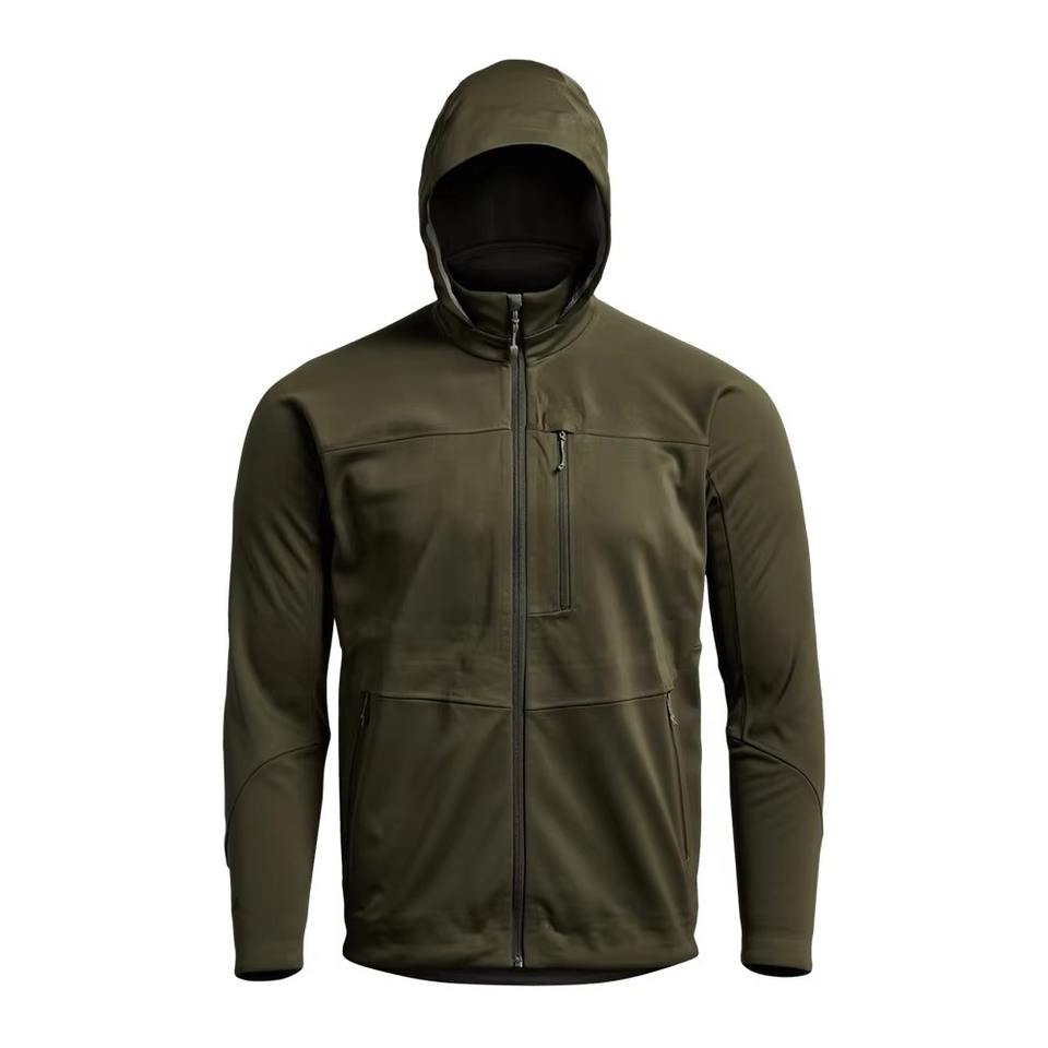 Custom Logo 100% Polyester Men's Winter Thermal Fleece Softshell Jacket Long Hooded Wind Breaker Zip Up Outdoor Hunting Jacket