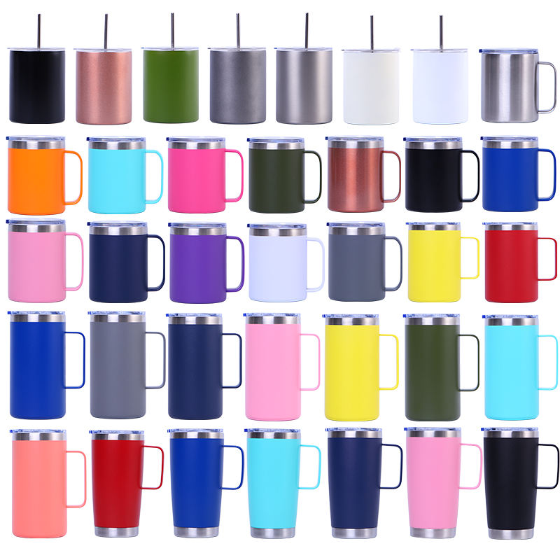 Custom Logo 12oz/14oz Stainless Steel Insulated Dishwasher Safe Camping Coffee Thermo Mug With Handle