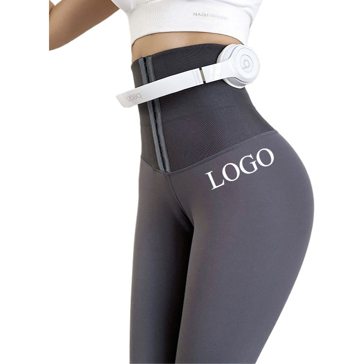 Custom Logo 2-Row Button Yoga Leggings Thermal Fleece Lined 3D Sculpting Control High Waist Stretch Ladies