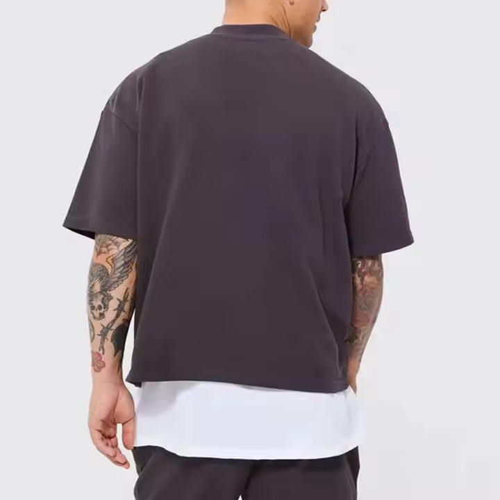 Custom Logo 300GSM Streetwear Box Cut Tee T Shirt Heavyweight Cropped Top T Shirt Graphic Cotton Oversized Boxy Fit T-Shirt Men