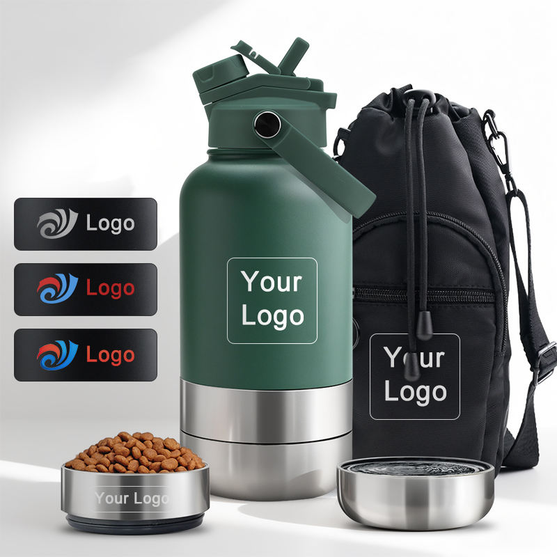 Custom Logo 32oz Stainless Steel Pet Feeder Portable 3-in-1 Style Outdoor Travel Bowl Insulated Dog Water Bottle for Cats