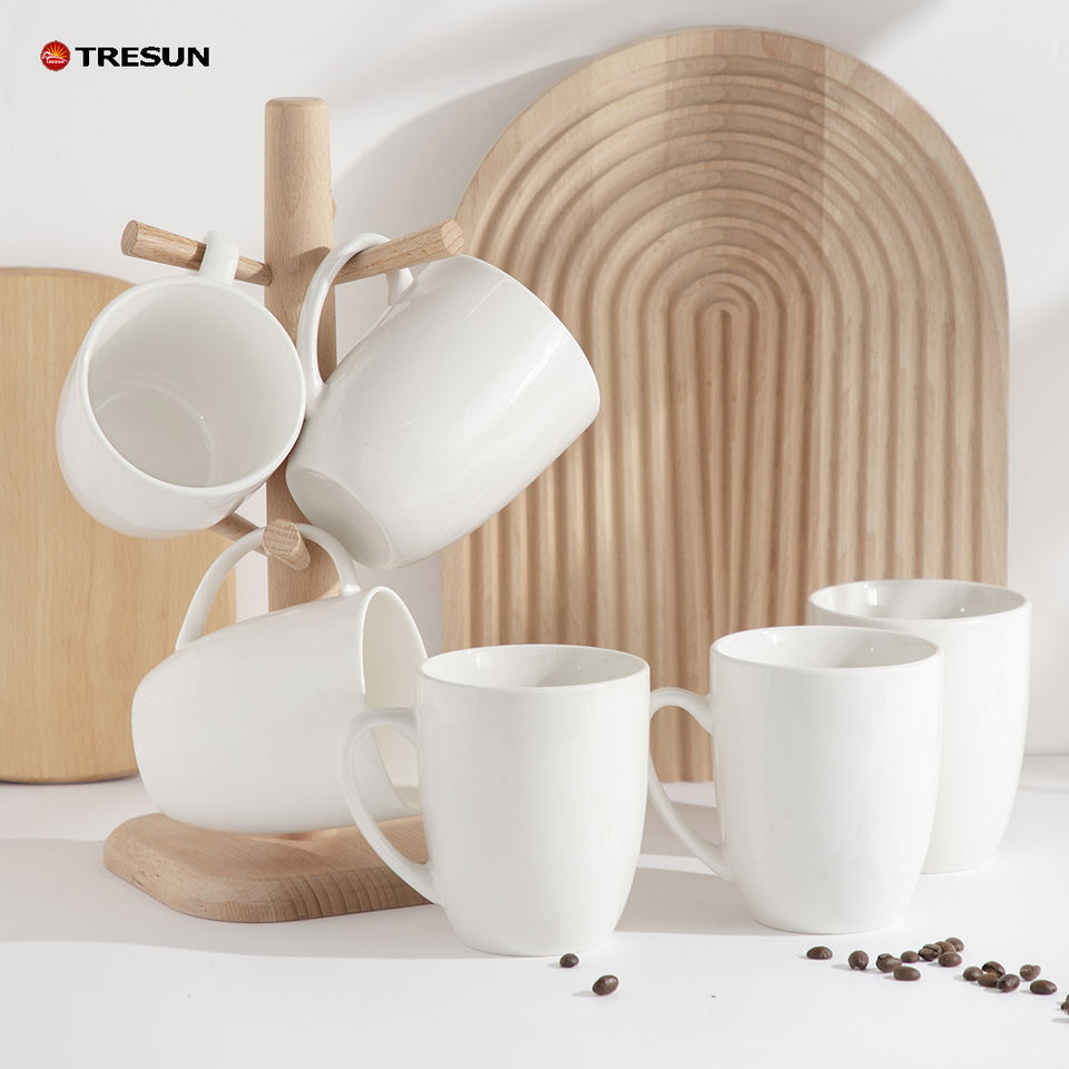Custom Logo 350ml White Glossy Ceramic Tumbler Arabic Modern Classic Design Reusable Eco-Friendly Dishwasher Microwave Safe