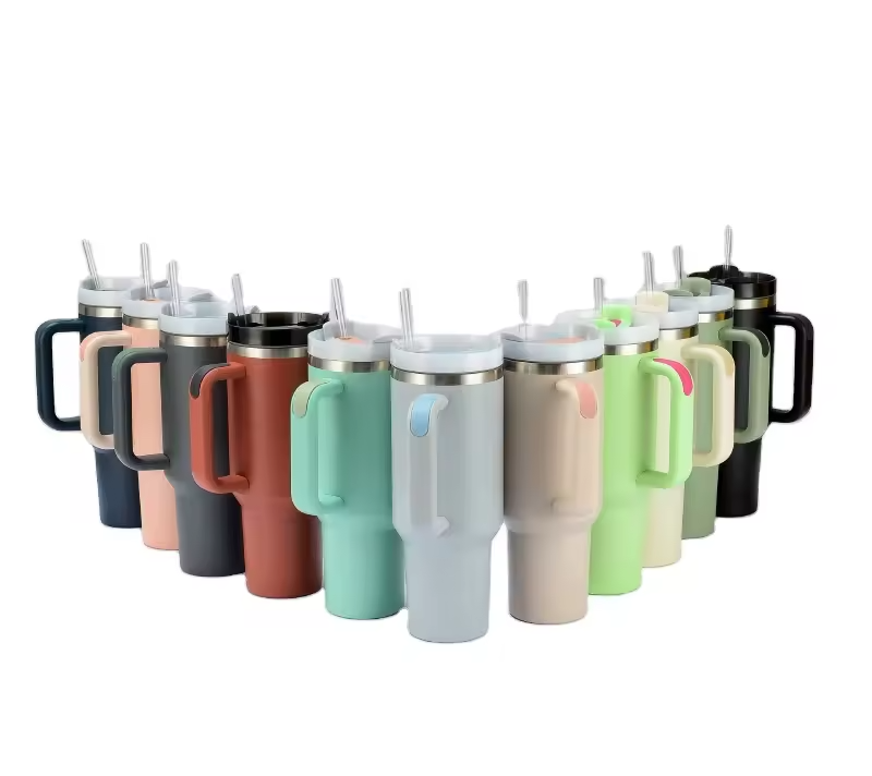 Custom Logo 40oz Double Wall Stainless Steel H2.0 Tumbler Travel Coffee Mug Thermos Cup Powder Coated Tumblers With Straw