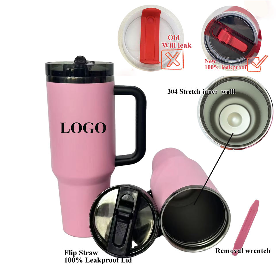 Custom Logo 40oz Stainless Steel Double Wall Vacuum Insulated Coffee Tumbler Handle Modern Classic Design Back School Dishwasher