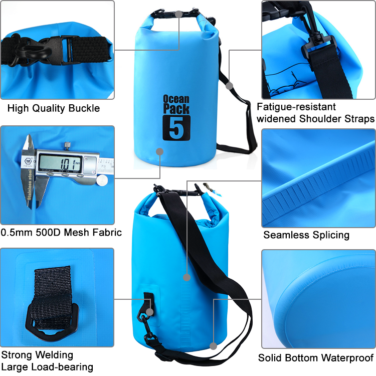 Custom Logo 5L Waterproof Dry Bag 500D PVC for Camping Hiking Boating Beach & Ocean Sports Pack Sack with Kayak Backpack