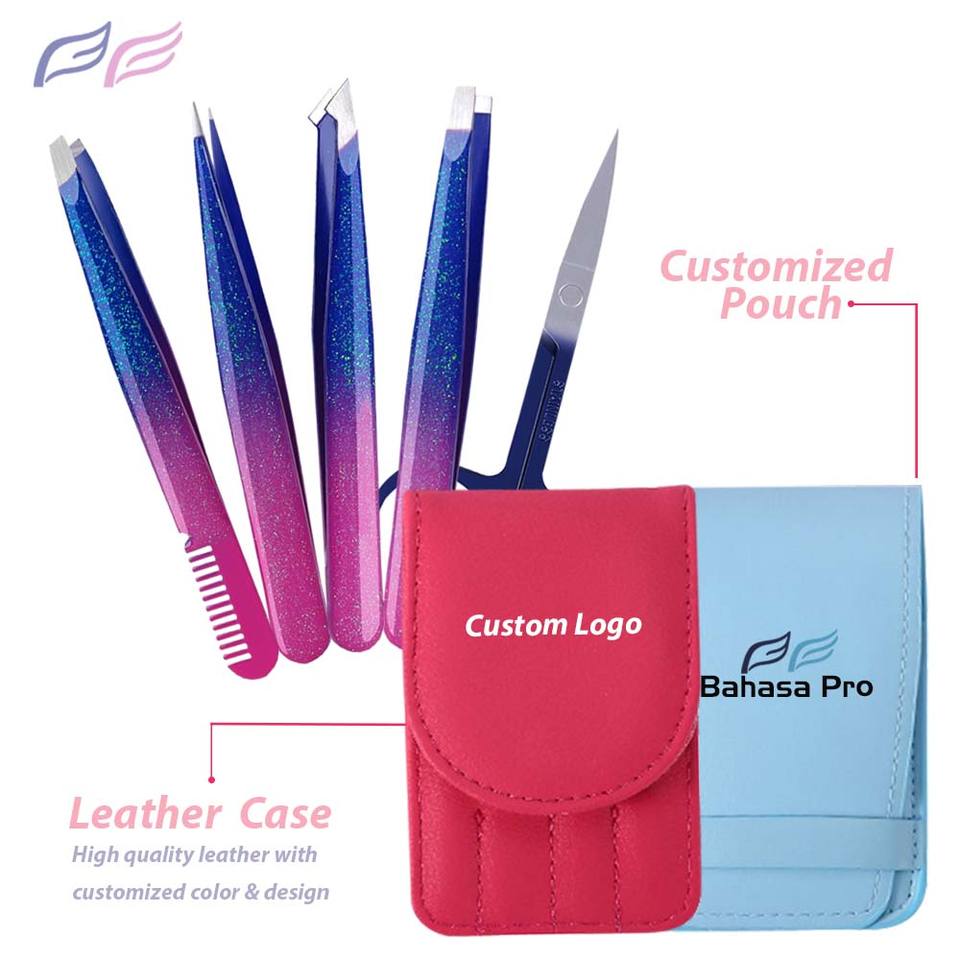 Custom Logo 5pcs Eyebrow Tweezers Set High Quality Pointed Tip Hair Removal Tool with Custom Packaging Beauty Use